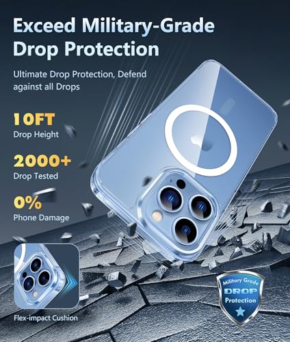 FNTCASE for iPhone 13 Pro-Max Case: Clear Magnetic Phone Cases Compatible with Magsafe Slim Anti Yellowing Military Grade Drop Protection Rugged Protective Transparent Cell Phone Cover (A-Clear)