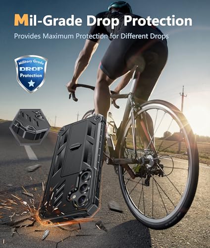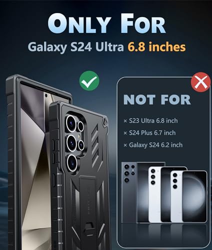 FNTCASE for Samsung Galaxy S24-Ultra Case: Military Grade Drop Proof Protection Cases with Kickstand | Shockproof Rugged Hard Phonecase Heavy Duty Matte Textured Protective Cover – 6.8 Inch Black