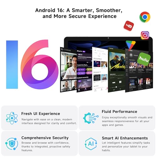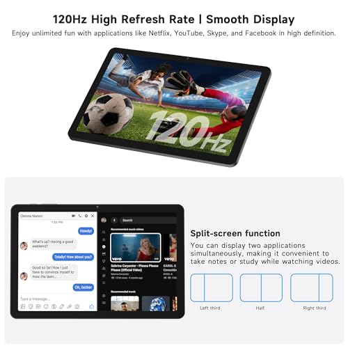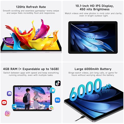 10.1″ HD IPS / 120HZ HIGH REFRESH RATE: 450-nit brightness keeps the screen readable outdoors. Blue Light Filter and Paper-like Reading Mode reduce eye strain for kids and adults. With support for 10-point multi-touch input, the display responds instantly and precisely to your finger gestures.