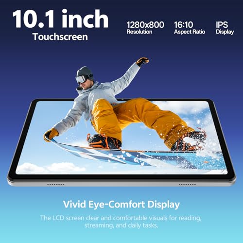 10” HD IPS Touchscreen Tablet, 20GB (3GB + 17GB) RAM, 32GB Storage, Expandable Up to 1TB (MicroSD Card Sold Separately) – Ample storage and expandability with 20GB ram and 32GB internal storage, slot expandable up to 1TB via a microsd card, you can store all your apps, educational content, videos, and photos, learning work reading. 10.1 inch IPS display features a 1280 x 800 high resolution screen 16:10 aspect ratio with, 10.1″ HD IPS display with wide viewing angles and vibrant colors—ideal for movies, gaming, or educational apps videos, web browsing reading