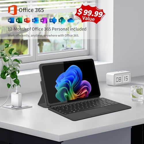 START WORKING IMMEDIATELY with a full 1-Year Office 365 Subscription – pre-installed on this versatile 2-in-1 device. Seamlessly switch between laptop and tablet modes using the magnetic keyboard, perfect for writing reports, editing presentations, or online collaboration in Word, Excel, PowerPoint, and Teams – whether you’re a student, remote worker, or creative professional