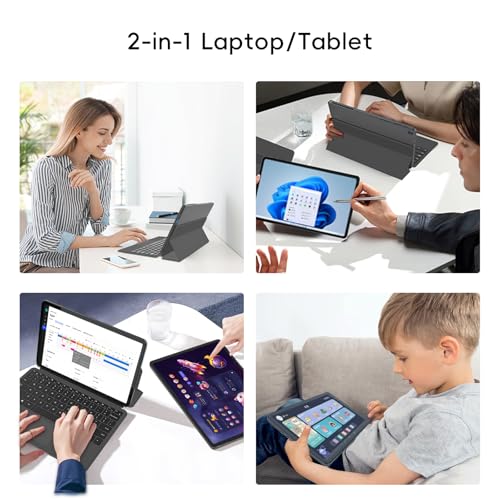 INSTANTLY TRANSFORM YOUR WORK AND ENTERTAINMENT with this 12-inch 2-in-1 tablet laptop. The included magnetic keyboard snaps on for a full laptop experience to tackle office tasks or studies, then easily use the leather case stand for hands-free movie streaming or following recipes. It’s the adaptable tech solution for students, remote workers, and creatives on the go